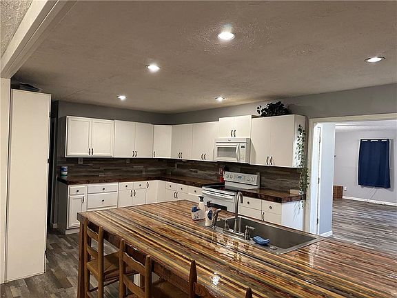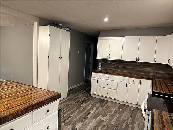 Fenced in side yardRocking chair front porchButcher block counter topsLarge open kitchenBonus roomLaundry room separateVinyl flooring throughout home