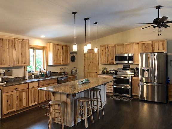Awe- Inspiring 4 bedroom, 3 bath home on 80 tranquil acres offers a full finished walk out basement, attached 2 stall garage with heated floors, stellar new kitchen includes hickory cupboards, granite countertop, stainless steel appliances, stunning views from every window, patio leading to large deck, spacious master suite with wood grain tile& stone in the bathroom, in floor heat, central boiler system large pole barn. Home provides 2 stocked ponds, pastures & great hunting (qdm) Manistee National trail system for snowmobiles and ATV's just minutes away also.