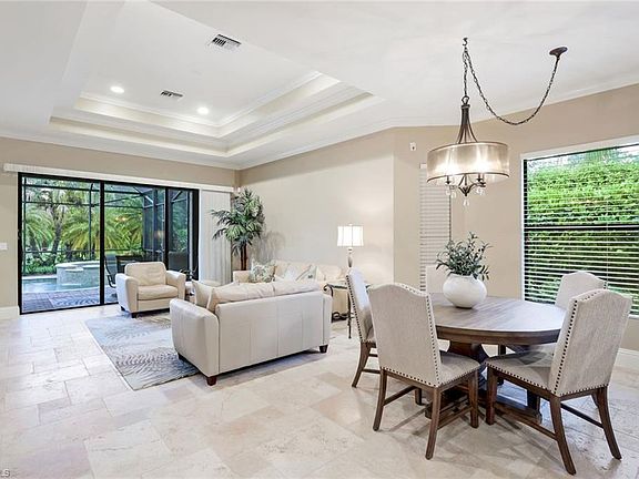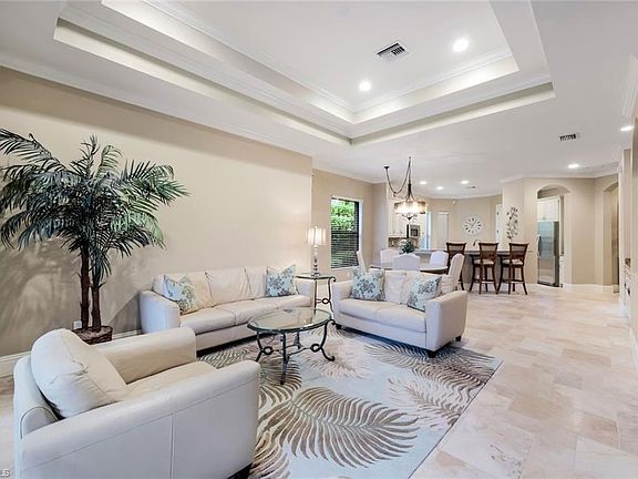 You must see this beautiful turnkey furnished 3 bedroom, 2 bath villa on the lake in Moorgate Point! Moorgate Point is located in the highly desirable Lely Resort Community. Perfectly located at the end of a cul-de-sac. This home boasts many upgrades including travertine floors, windows with impact glass and electric shutters, high ceilings with trays and crown molding, solid doors, granite counter tops in the kitchen and bathrooms, Kitchen Aid appliances, automatic salt water pool with autofill system. A BRAND NEW ROOF was installed in 2022! Just 15-20 minutes from Marco Island and the Marco Island beaches. Just 20-25 minutes from famous 5th Avenue, 3rd St. and Naples Beach.