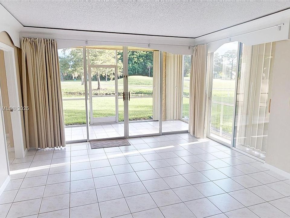 Check out the virtual tour The views, courtesy of floor to ceiling sliding doors almost everywhere, make the Atrium a highly desirable community where the outside feels close. Spacious 2/2 on ground floor of an "all age" community in peaceful Woodmont looks to the well maintained Country Club golf course and lake. This extremely clean unit is located near the police department and Woodmont HCA hospital as well as shopping. The entire condo is protected by accordion hurricane shutters. The large kitchen has plenty of cabinets and includes a butcher block area for specialty dishes and pastries. The features also include a laundry room within the air conditioned space. Assn covers wifi, cable, water, sewer and trash. 1 assigned parking +.
