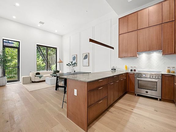 Residence No. 2 is a spacious three-bedroom, two-bathroom home occupying the entire Parlor Floor. Upon entry, you are immediately captivated by the tall ceilings (over 12 feet) and the rear windowed wall that offers a picturesque view of the garden. Bathed in natural light and exuding an airy ambiance, Residence No. 2 is truly a gem. This home boasts a large private rear garden with a deck, perfect for outdoor dining and entertaining. The oversized primary bedroom easily accommodates a king-size bed and features a stunning en-suite bathroom and an enormous walk-in closet. The secondary bedrooms are ideally situated to allow for a bedroom on the opposite side of the house, and a home office or nursery adjacent to the primary bedroom.