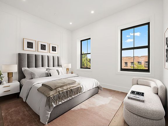 Residence No. 4 is a spacious three-bedroom, two-bathroom home that occupies the entire floor. Upon entry, you are immediately captivated by the tall ceilings and natural light that offers a picturesque view of the treetops on 1st Street. Bathed in natural light and exuding an airy ambiance, Residence No. 4 is truly a gem. This home boasts a large private roof terrace with Statue of Liberty and water views, perfect for outdoor dining and entertaining. The oversized primary bedroom easily accommodates a king-size bed and features a stunning en-suite bathroom and an enormous walk-in closet. The secondary bedrooms are ideally situated, allowing for a bedroom on the opposite side of the house and a home office or nursery adjacent to the primary bedroom.