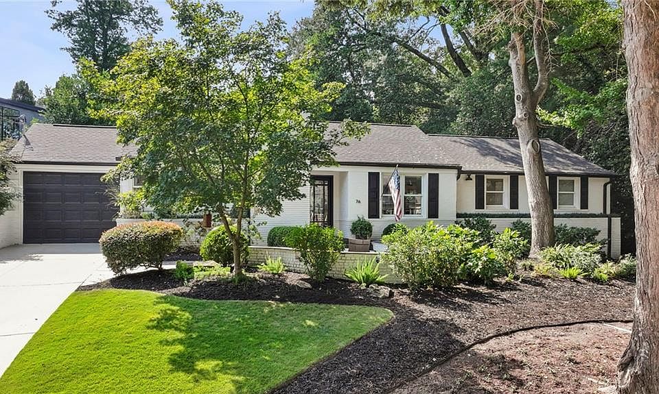 Tucked away in the heart of Atlanta’s Ardmore Park neighborhood, 76 28th St. is a beautifully updated brick ranch that blends function with modern comfort and style. This 4-bedroom, 3.5-bath home offers an inviting open layout with living room, kitchen, family room and dining area all blending together harmoniously. The living room boasts a dual-sided fireplace and wall of windows to enjoy the natural south facing light and back yard. The chef’s kitchen is a showpiece with a central island, gas range, granite counters, stainless steel appliances, as well a dry bar, making it perfect for both everyday living and entertaining. A stunning family room off the rear has a vaulted, beamed ceiling, skylights, second fireplace, built in bookcases and glass doors that open onto a spacious stone terrace. The luxurious primary suite includes his and hers closets and spa-like bath with double vanity and spacious shower. Two secondary guest bedrooms share a recently renovated bathroom earlier this year. Laundry room conveniently located on the main floor as well as a half bath for guests. The finished daylight basement provides a versatile guest/in-law suite or office with a 4th bedroom, full bath, private rear entry as well as a media room. Outdoors, the fenced backyard is a true retreat! Walk out stone patio, terraced gardens, basketball court, waterfall feature, fire pit area and a flat green space for play and relaxation. One car attached garage with epoxy floor makes coming and going very easy- and includes a shed off the rear. Plenty of behind-the-scenes features to brag about as well —including a newer roof, tankless water heater, wooden doors, upgraded light fixtures, door hardware to name a few—ensure peace of mind. Ideally located near Buckhead, Midtown, major highways, top schools, the Northwest Beltline Trail, Ardmore playground, fantastic restaurants (Bell Street Burrito, Botica, Sufis, and R. Thomas), this home offers the perfect balance of tranquility and convenience in one of Atlanta’s most sought-after areas.