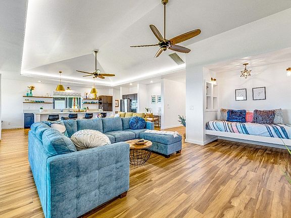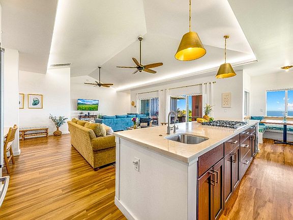 Enter the main home through a double door entry that draws you toward the expansive views off the back lanai. Take in the gentle breeze on the rope swing daybed or unwind by the fire pit as you watch the sun drop into the Pacific Ocean.