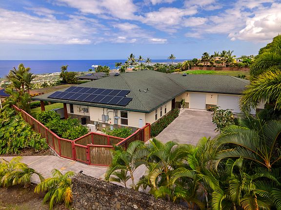 Located in highly sought-after Kona Vistas, this spacious 3-bedroom, 2 full-bathroom plus 2 half-bathroom home sits on a half-acre lot with panoramic ocean and coastline views. Designed for both elegance and comfort, it offers the perfect combination of indoor and outdoor living.<br><br>A true highlight is the resort-style backyard featuring a saltwater pool, hot tub, and expansive covered lanai of 1065 sq. ft. Ideal for entertaining or relaxing while enjoying Kona’s famous sunsets. The property is fully fenced/gated and landscaped with fruit trees including producing Avocados, mangos, guava, lime, Meyers lemon and orange creating a private oasis.<br><br>Inside, the open-concept design showcases 10 ft. ceilings, pocket door, natural light, and thoughtful details throughout. The primary suite is a retreat with direct lanai access, a spa-inspired bathroom, and a large his-and-hers walk-in closet. Two additional bedrooms and well-placed bathrooms, including two convenient half baths, provide flexibility for family, guests, or office use. Enjoy the luxury of a fantastic outdoor shower!<br><br>The chef’s kitchen and spacious living areas flow seamlessly to the outdoors, emphasizing the home’s island lifestyle. There are so many cabinets plus a large pantry with many more cabinets, laundry and dog bath.<br><br>* Energy efficiency is ensured with a fully owned Solar PV system and battery storage. And gas instant hot water heater, dryer, stove top and tiki torches. Practicality meets luxury with a massive 1,056 sq ft, 3-car garage, offering space for vehicles, storage, workbench and 1/2 bath. Ample driveway parking adds to the convenience. This home truly embodies the best of Hawai‘i living—sustainable, private, and designed for relaxation and entertaining. At the prefect elevation and split AC's and ceiling fans in every room. Interior and exterior of the home have just been freshly repainted. Make this exquisite property your new home. *Home is sold furnished!