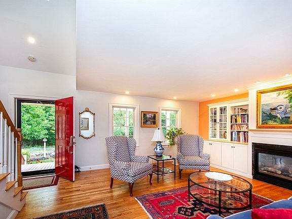 Scituated down a private drive yet in convenient "harbor "location, this spacious home boasts of an expansive first floor primary ensuite with two walk in closets and a updated bathroom with tub and separate tiled shower. Sliders from the bedroom lead to the back deck. The chef of the house will delight in the updated kitchen which features custom cabinets, a 6 burner gas stove with hood vent, and a large center island. The laundry room and pantry are located of off the kitchen. Additionally on the first level is a formal dining room with plenty of space for entertaining, living room with built-in cabinetry and bookcases surrounding a gas fireplace, and a family room which boasts of sound surround and recessed lighting, perfect for "game day". The second floor accommodates two generous size bedrooms and a full bath as well a extra storage space. Enjoy the options of a wooded view from the farmer's porch or relaxing on the expansive back deck overlooking the back yard and patio.