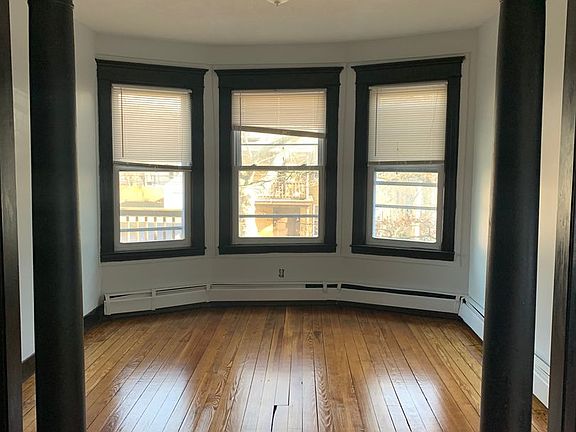 Large 2 Bedroom, 1 bath, 2nd floor apartment on quiet street. Hardwood floors, living room, dining room and eat-in kitchen with new flooring. Lots of natural light and large back yard.