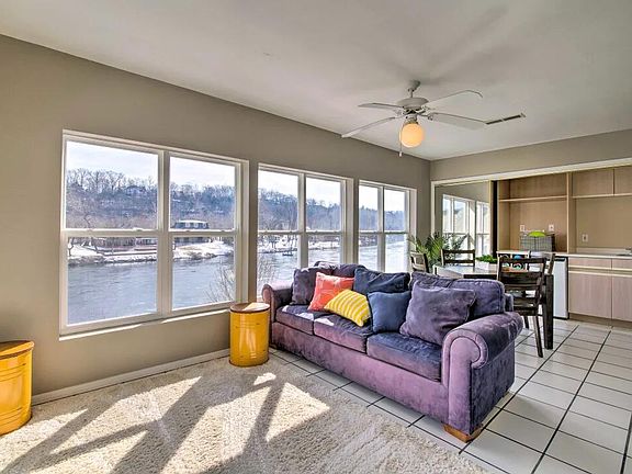 Lakefront. 3BR. STR. Property has an exclusive & rare Diamond Amenities package (if it transfers with the sale) that be in addition to the monthly fee and will run approximately $723.71 per year. This building is right next to the marina. This fully turnkey furnished second story condo has a fantastic Lake Taneycomo view. Soaring lofted ceilings greet you as you enter. Fully equipped kitchen features stainless steel appliances. 3 Bedrooms all with king size beds, 3 bathrooms. With 2 sofa beds, this place can comfortably sleep up to 10! One of the highlights of this unique property is the heated and cooled sun porch, A perfect room for serenity. Enjoy your morning coffee or evening view of the fisherman on the lake and it also features a wet bar. This is an active vacation rental property. Stack washer and dryer installed in 2018, New HVAC and water heater in 2019. Flooring updated 2022. All new beds and mattresses. Property was painted within the last year.