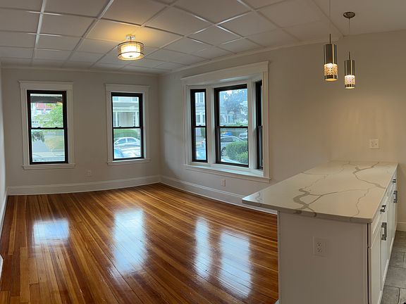 Gorgeously renovated first floor three bed, two modern baths, new stainless appliances, quartz counters, central A/C, forced hot air, laundry plus private locked storage. Tons of natural light and hardwoods throughout with dedicated living and dining rooms. Kitchen features SS gas range, refrigerator, microwave, dishwasher and more. Large private/locked basement storage and the convenience of a dedicated parking spot! 2min walk to bus / Blue Line Orient Heights MBTA. Two stops to airport, 4 to Aquarium/downtown. Grocery store 4 min walk, beach 4 min drive. A short 5-10 min walk to shops, restaurants, beaches, parks and gyms tells you why this THE most desirable location! Good credit a MUST. Tenant pays utilities, first, security, and credit check. No last month! No broker fee!