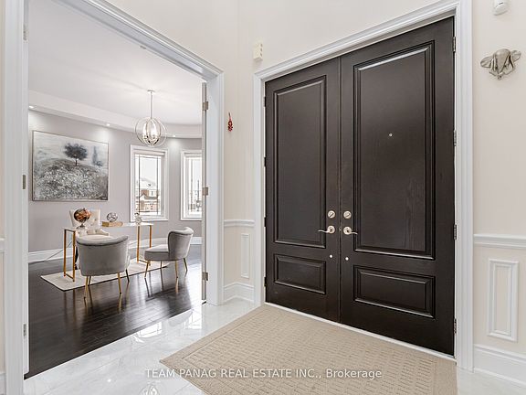 Welcome to "The Carmichael" Model C by Countrywide Homes, an exquisite luxury home offering approx.6,400 sq ft of lavish living space, including a builder-finished basement and $450K in upgrades. The main floor features soaring 10' ceilings, a grand living room, dining room, stunning kitchen with quartz counter tops, Wolf/Subzero appliances, breakfast area, spacious family room with open-to-above ceilings, and a large office. Upstairs, the primary bedroom boasts a spa-like 7-piece ensuite and walk-in closet, while the 2nd and 3rd bedrooms offer 3-piece ensuites and walk-in closets, and the 4th and 5th bedrooms share a 3-piece bath. This home showcases premium finishes, including hardwood floors, crown molding, smooth ceilings, upgraded iron pickets, and pot lights throughout. Situated on a premium no-sidewalk lot, it features a heated garage, 5-car driveway, 3 car garage, $40K interlocking, irrigation system, and a brand-new furnace (2022). Extras: Samsung washer/dryer, gas cook top, Wolf/Subzero app, brand new AC (2025).