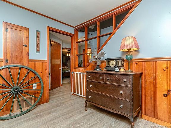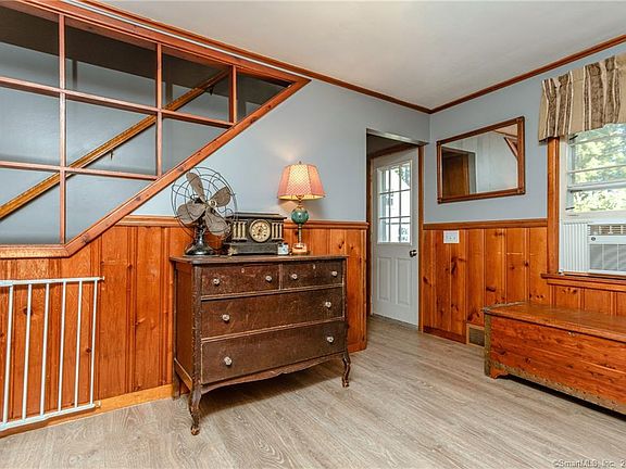 Welcome home to this Charming Cape Cod style home in Killingly!! This property sits on nearly a full acre of land and is set well off the road for plenty of privacy. This home features a cozy traditional feel with two bedrooms on the first level and another two bedrooms upstairs. The kitchen has plenty of counter space and storage, stainless appliances, new vinyl plank flooring and plenty of room for a kitchen table. The living room is spacious with hardwood floors and a great fireplace surrounded by built-in shelving and a Rustic wall accent!! Well placed off the Kitchen is a fantastic screened in three season room with lighting and ceiling fans...perfect place to enjoy a cup of coffee on a summer morning!! There is a paved circular driveway, large two-car garage with loft and a nicely sized flat yard with mature trees and perennials. Great location with easy access to both Killingly and Downtown Putnam for shopping, dining and entertainment as well as close to major routes for commutes to Providence, Worcester, Boston and Hartford. 2nd Full Bathroom is located in the basement.