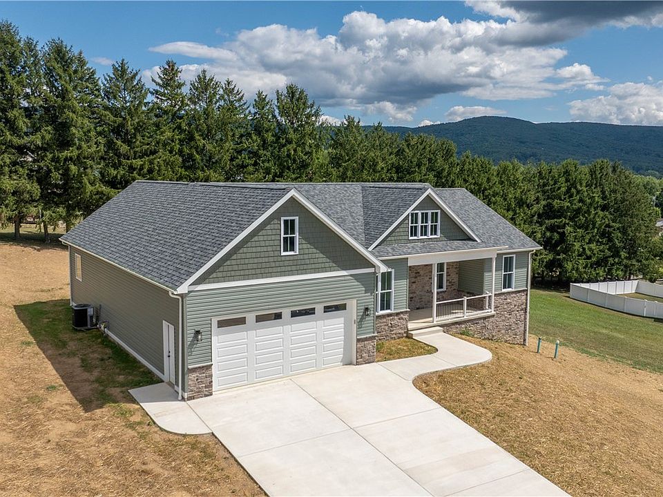 CRISP CLEAN LINES AND BRIGHT, NATURAL LIGHT THROUGHOUT THIS NEW CONSTRUCTION RANCH HOUSE! Open floor plan that features: large kitchen with island, quartz counter tops with soft closed cabinetry, breakfast nook with a tray ceiling, living room with stone fireplace, 3 bedrooms, office and 2 baths, master suite has bath with tile shower and soaker bathtub and walk-in closet, first floor laundry room, oversized garage, covered private back deck and close to all amenities!