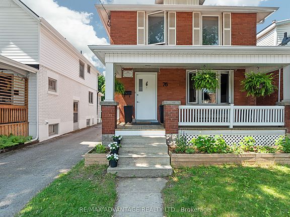 This well-maintained, carpet-free 3 Bedroom, 2 Bathroom home is situated on a fully fenced 30' x 115' lot and offers a seamless blend of timeless character and functional updates. The main floor features a bright, open-concept layout with defined living and dining areas, a central kitchen with adjacent breakfast nook, and a convenient two-piece bathroom. Upstairs includes three good-sized bedrooms and a full four-piece bath. The finished lower level offers additional living space, laundry, utility area, and in-law suite capability. Exterior highlights include a private, tree-lined backyard oasis with mature landscaping, a detached garage, and private/mutual driveway parking. Strategically situated facing south, the sun pours in through the front porch, living room and two secondary bedrooms. Additional features include a cozy wood-burning fireplace, covered front porch, clean carpet-free interior throughout and central air conditioning. Ideally located within walking distance to Kiwanis Parks trails, splash pad, and playgrounds, and close to the Western Fair Market, schools, public transit, downtown amenities and access to the 400 series Highways. Zoned R2-2 in a family-friendly community, 76 Beattie Avenue presents an exceptional opportunity to own a move-in ready home in one of London's hidden gem neighbourhoods.