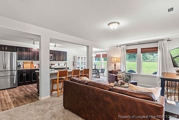 Beautiful 4 bedroom/2.5 half bath home located in the Ben Woods subdivision. Home features open floor plan perfect for entertaining and everyday living. Kitchen has granite countertops, stainless steel appliances, and LVP flooring. Master bedroom upstairs with a spacious layout and walk-in closet. Three additional bedrooms and bonus room are generously sized and versatile. Large backyard great for outdoor gatherings and relaxation. Located a short 5-10 minutes from shops and restaurants in Lillington. 2 car garage.