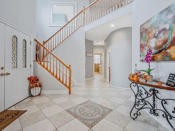 Welcome to 76 Blueberry Ridge Drive in Holtsville, an expansive Colonial located in the highly desired Summerfield Gated Community. As you arrive at the property, you’ll immediately be impressed by the curb appeal featuring a paver driveway, beautifully maintained grounds, and a charming covered front porch. Step inside to a warm and welcoming foyer with a stunning two-story cathedral ceiling. From here, you can head in one direction toward the formal living room, which opens seamlessly to the formal dining room; or in the other direction toward the double garage entry, half bath, and laundry room. Continue straight ahead to the beautiful kitchen boasting a center island, 42-inch maple cabinets, brand-new stainless steel appliances, granite counters, and a tiled backsplash. The kitchen overlooks the inviting family room, highlighted by gorgeous coffered ceilings and a gas fireplace — the perfect space for entertaining. Head upstairs to discover what truly makes this one of Summerfield’s most unique layouts for this model. The primary ensuite features new wood floors, double walk-in closets, and a spa-like bathroom with a soaking tub, oversized shower, and heated floors — the perfect retreat to end your day. The second bedroom is the size of a primary bedroom and includes ensuite access to a full Jack-and-Jill bath connected to both the hallway and the expansive third bedroom. The bonus room provides versatility as a home office, craft room, playroom, or anything else your lifestyle requires. The unfinished basement features high ceilings and spans the entire length of the home, offering endless possibilities — whether you envision a gym, additional storage, or a future expanded entertainment area. Head out back through the French doors to enjoy warm-weather days and nights cooking with the BBQ gas-line hookup and entertaining on your Trex deck with a retractable awning. The yard overlooks serene surroundings, including a waterfall feature and a semi-sunken above-ground pool surrounded by a paver patio. Additional highlights include hardwood floors, hi-hats, updated electric, central air-conditioning, central vacuum, and an in-ground sprinkler system. Summerfield is an incredible community offering 24-hour security, a beautiful clubhouse, pool, tennis courts, gym, basketball and volleyball courts, bocce, playground, and daycare facilities on-site. With most updates being five years young or newer, 76 Blueberry Ridge Drive is truly a must-see — and it will not last!