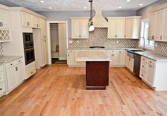 This one is a step above all the rest! Walk in and fall in love with the 9ft ceilings, custom paint colors, stylish woodwork, and a true chef's kitchen!. Hardwood throughout the home!. Home Office placed off the fire placed family room allows for both work and play! Formal dining room has wainscoting on bottom with stylish wallpaper on the top. The kitchen has rich cream cabinets, granite counter tops, backsplash, wall oven, countertop stove, farmer's sink, cook vent with custom cover, and huge island. Additional space gives the opportunity for a desk area and wine rack. The master suite is large but warm & comfy. The master bath has a soaking tub, double walk in tiled shower, two sinks, and linen closet. In the front of the master bedroom is an additional space with four custom closets, custom paint and more stylish wallpaper. This space can be a sitting room, a second office, a nursery? Venture out to the oversized deck with center entrance with plenty of room for more fun