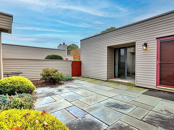 Charlton Hill, a mid-century modern style complex, is one of Hamden's hidden gems! This ranch-style condo offers a warm and inviting atmosphere, featuring gleaming hardwood floors and an open-concept layout that provides both comfort and flexibility. The spacious living and dining area is anchored by a lovely raised-hearth fireplace and enhanced by floor-to-ceiling windows that flood the space with natural light and offer views of the private patio with retractable awning. An eat-in kitchen is perfectly sized for casual meals and everyday convenience. The primary bedroom has sliding doors to the patio and a private full bath, while a second bedroom, an additional full bath, and a laundry area complete the main level. The partially finished lower level includes a family room with retro carpeting, built-ins and a third full bath - ideal for a home office or work out space. A covered carport adds to the ease of living and a pool in the complex provides plenty of summertime fun. Located just off Whitney Avenue in the Mount Carmel neighborhood, this home offers easy access to Sleeping Giant State Park, the Farmington Canal Greenway, local shops and restaurants, and major highways for a quick commute to Yale and downtown New Haven.