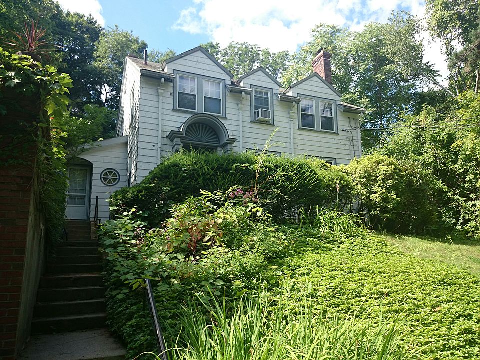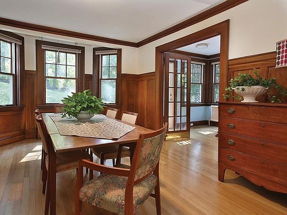 Circa 1920. This beautifully maintained sun-filled Colonial-style residence is set a top a knoll with tree top views. The main level features an eat-in kitchen with many updates and lovely views of the back garden, a living room with a beamed ceiling, a custom marble fireplace and an opening to a pretty dining room with wainscoting and a built-in china cabinet. A bright den and a powder room complete this level. The second level is comprised of three bedrooms, a full bathroom, and a spacious master bedroom with a bathroom. Recent improvements include new exterior shingles, electrical upgrades, restoration of windows, and rewiring of the garage. This property is in close proximity to the high school, Brookline Hills T stop, and village shops and restaurants