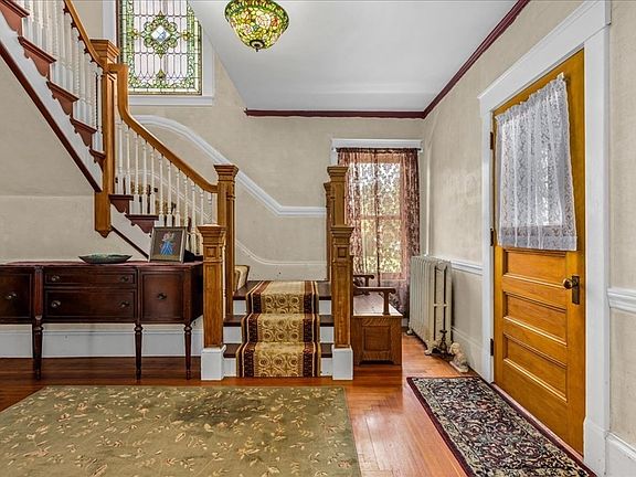 Amazingly updated Village Colonial with turn-of-the-century charm and 2,930 sf on 3 finished living levels providing 4 beds and 2.5 baths. Many original features have been restored including the large welcoming foyer with stained glass windows, the solid wood pocket doors to the den, and the back butler’s staircase. Enjoy the updated kitchen with cherry cabinets, SS appliances, and granite counters. Upstairs is a true primary bedroom with a walk-through closet and a private full bath. The 3rd floor has been renovated for the 4th bedroom with a sitting area. A beautiful mahogany deck overlooks the yard and a 2-car carriage house-style garage. Central Air, newer roof, windows, plumbing, boiler. Home office with a small sign allowed per zoning. Convenient to schools, medical centers, and commuting routes. See the list of property features attached. Seller reserves the right to accept an offer at any time.