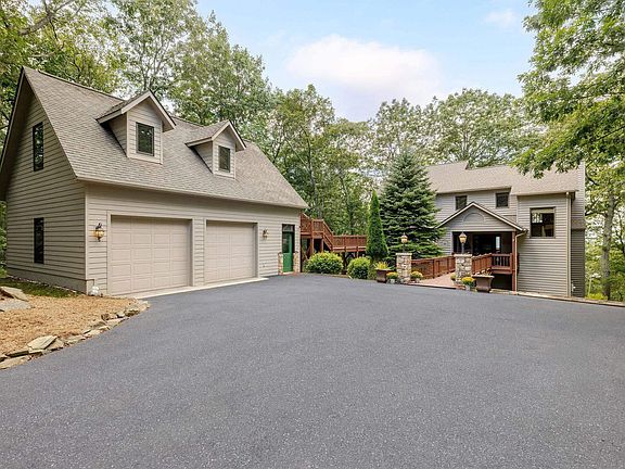 Welcome to Green’s View—one of Wintergreen’s premier homes, offering breathtaking sunset, mountain, and valley vistas. Designed for both relaxation and adventure, this extraordinary retreat provides space for the whole family and a direct backyard trail to a scenic overlook. Inside, the main house features expansive windows framing the views, four bedrooms, and three-and-a-half baths. Two separate living areas and an oversized deck create ideal spaces for gathering and enjoying the mountains beyond. Connected by a walkway and staircase, a private guest suite rests above the two-car garage. Set at the end of a quiet cul-de-sac, with a rare level paved driveway, this home combines privacy, peace, and effortless access to nature. Located within Wintergreen Resort, this home offers access to all community amenities and year-round enjoyment. Four seasons of adventure await—hike among vibrant fall foliage, relax by the pool in summer, and ski the slopes in winter. A full calendar of festivals, events, dining, and entertainment ensures there’s always something to discover.
