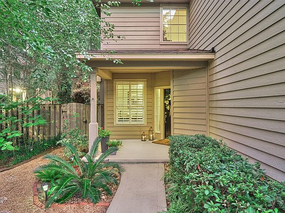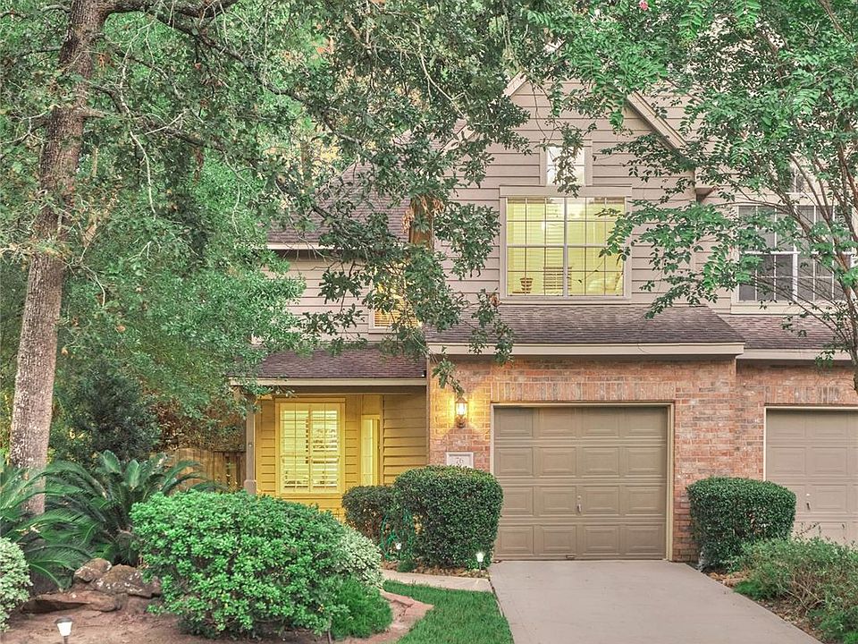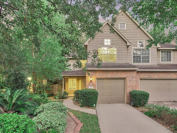 Light and Bright Adorable Lifeforms Townhome in the beautiful neighborhood of Lake Forest in Cochran's Crossing! 2 Bedrooms, 2 1/2 baths, Study, Laundry Room in the house AND attached garage all in a Great Central location within The Woodlands! Tons of updates including wood-like floors on 1st floor, recent carpet upstairs, custom window treatments, brushed nickel hardware, faucets, light fixtures, quartz counter tops, tumbled marble backsplash in kitchen, stainless appliances & fresh paint. Beautiful Fireplace that is updated and modern. Window treatments. Easy maintenance backyard with stone patio and side yard ideal for pets. Also has lovely balcony off Master Bedroom perfect for enjoying mornings outside! Front yard is maintained by the low cost HOA and features a parklike setting with lush landscaping & full sprinkler system. This home is ready for you to move right in! WELCOME HOME!