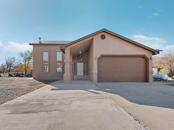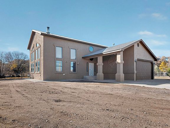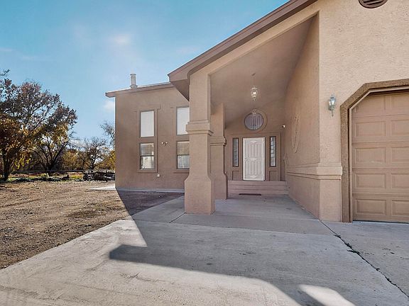 Beautiful home backing up to the Rio Grande with breathtaking views of the Manzano Mountains, nestled among mature trees in a serene setting. Enter the home to be met with soaring ceilings flooding the home with natural light, and a cozy fireplace to add charm. Offering 2,342 sf of living space w/ 4 bedrooms, featuring 2 bedrooms on the main floor and 2 upstairs, including the primary suite complete with a large walk-in closet and private balcony. Numerous upgrades include updated flooring, a freshly painted exterior, metal roof, refrigerated air, and pipe fencing surrounding the full one-acre lot. Plenty of room for the animals and toys! This is a rare opportunity to enjoy privacy, scenery, and space in a truly special riverfront setting. Must see for yourself!