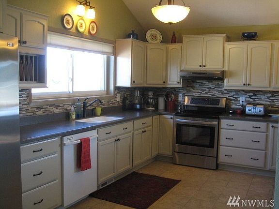 New Listing! BEAUTIFUL VIEW! Custom home on approx 5.5 +/- acres features 5 bed/4 bath, beautifully REMODELED kitchen w/breakfast bar & some stainless steel appliances, large vaulted ceiling living rm w/fireplace, office space, dining rm, tiled entry, 2 of the baths have been REMODELED. Downstairs includes family rm w/new pellet stove, additional rms for storage. Custom wood flooring. Central Vac. 30X40 shop. Pasture fenced & cross fenced. OID irrigation. Deck & pool. $345,000 H-2341/MLS916342