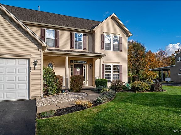 Welcome to 76 Graystone, a meticulously maintained home ready for its new owners. This center-entrance Colonial greets you with a bright, two-story foyer with gleaming hardwood floors through most of the first floor. The windows let in an abundance of natural light. The kitchen, ideal for entertaining, features stainless steel appliances and a convenient center island perfect for quick meals. Adjacent to the kitchen, the morning room provides a tranquil space overlooking a private, wooded backyard. A sliding glass door leads to a deck, offering a serene spot to enjoy your morning coffee. The family room, complete with a gas fireplace creates a cozy option and extends the entertaining space from the kitchen. A formal dining room and living room round out the rest of the first floor, along with a first-floor laundry and a half guest bath. Up the split staircase, the second-floor features four generous bedrooms and a guest bathroom. The primary bedroom includes a private bathroom and a walk-in closet. The basement is pre-plumbed for a bathroom, should you wish to finish the space. Recent updates include a new furnace and central A/C in 2018, a new hot water tank in 2022, and a new sump pump in 2025. You will surely want to make this your home for the Holidays!