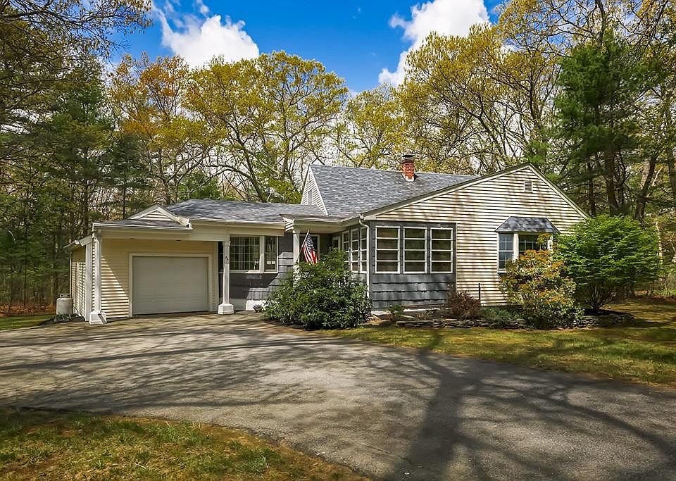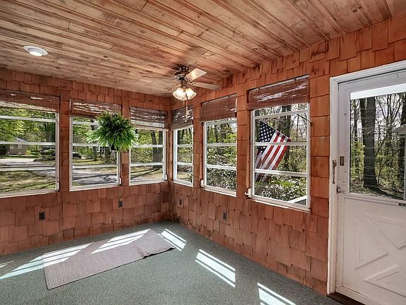 Lovely home set back from the road with a large yard, abutting conservation land! As you enter the home you are greeted with a great layout and plenty of space. The dining room flows seamlessly into the large sun drenched living room with vaulted ceilings, gas fireplace, and glass sliders leading out to the deck. Just off the dining room is the bright kitchen with a built in breakfast bar and a glass door to the deck. Towards the front of the home is the family room with delightful bay windows and a fully enclosed front porch. Two sizable bedrooms and a full bathroom complete the main level. Upstairs is another bedroom, an office and a full bathroom with a generous linen closet. There is even more space with the full clean basement. Enjoy al fresco living with an extensive yard and attractive deck! Located in an excellent school system and close to major highways this home is a gem worth seeing!