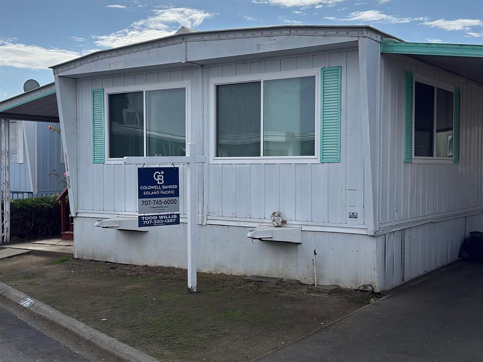 Welcome to Olympia of Vallejo! This charming 2-bedroom, 2-bath double-wide home offers comfort, convenience, and thoughtful updates throughout. Enjoy fresh interior paint, newer carpet, and dual-pane windows that bring in plenty of natural light while keeping the home energy-efficient. New dual pane windows and sliding glass door installed. The newer roof provides peace of mind for years to come. The spacious floor plan includes a comfortable living area, a bright kitchen with ample storage, and a primary suite with its own private bath. Located in the desirable Olympia of Vallejo community is convenient located close to shopping, dining, and freeway access. 24 hour security. Front porch has been enclosed and sheet rocked for additional living space.