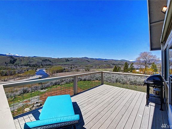 'Top of World' Home on 3.45 Acres.Live here now, build main home later! Full Sun & quiet dynamic are yours to absorb from deck off homes main level. Includes 'Sunsetter' awning that extends over entire deck. Methow river winds through green landscape below. Rugged Sawtooth and Cascade peaks inspire. 356 sf home offers comfort with ease. Heated insulated fixtures room. 1 Bath. Loft Bedroom. Studio Kitchen. Storage building. Gravel driveway. Low maintenance. Enjoy this grand setting simply!