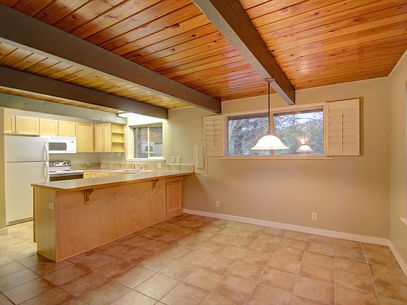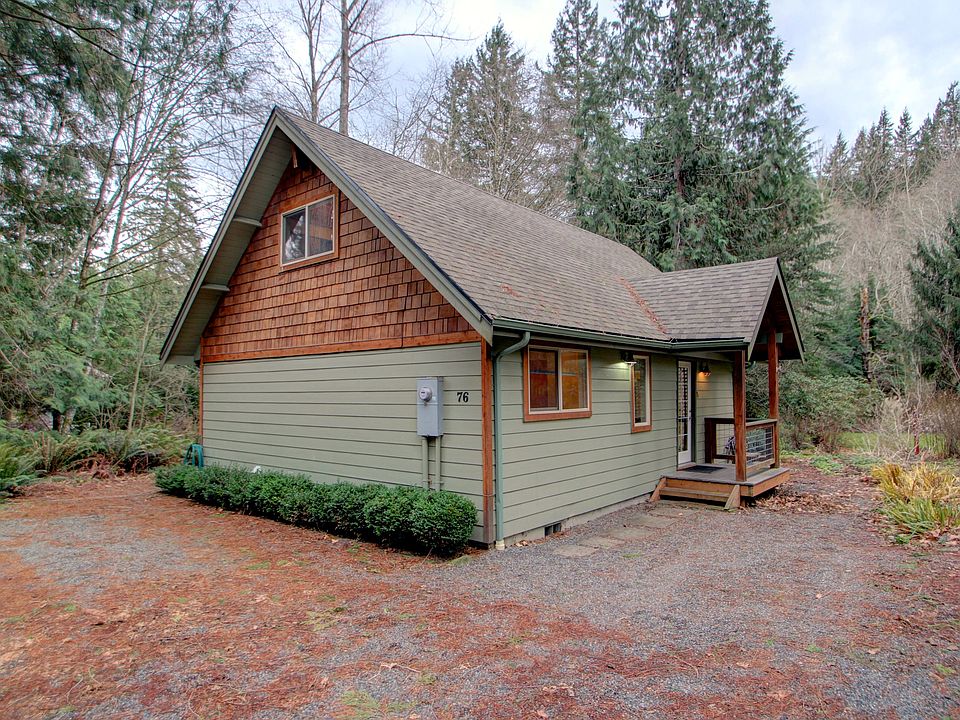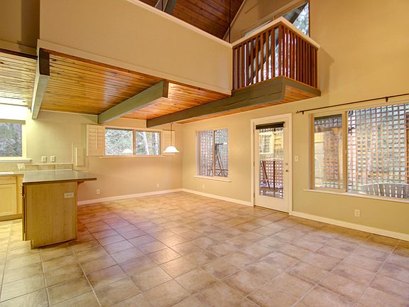 Udated & almost completely rebuilt chalet on beartiful level lot looking into greenbelt with Beaver Creek frontage at the rear. Lots of parking & space for carport or storage. The home was moved from adjacent lot in 2006 / 2007 with new foundation, siding, windows, floors, kitchen, roof, hot water tank. Most plumbing and electrical was new at that time. Charming home and property with vaulted wood ceilings and exposed beams. Tile with radiant floor heat throughout the living, kitchen, dining & bedroom. Carpet in both bedrooms and loft area.