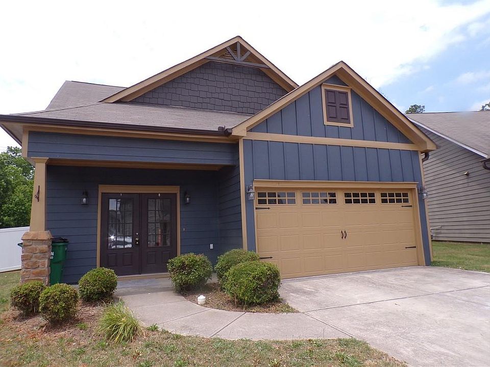 Won't last long as craftsman beauty has fenced level yard w/ patio , rocking chair front porch & huge great room w/ fireplace that opens to kitchen & dining room. Primary bedroom on main w/ walk-in closet, other 2 bedrooms upstairs. Lovely kitchen & laundry rm downstairs. Freshly painted interior, Beautiful LVP flooring & new Carpet. Seller is going to stain the fence in back yard this week. Supersized, level back yard! Swim community in awesome location. Playground for the children too! Great for easy commute as less than 1 mile to 75!