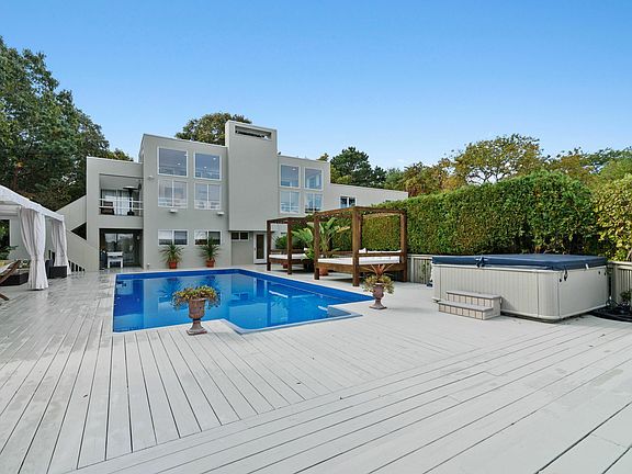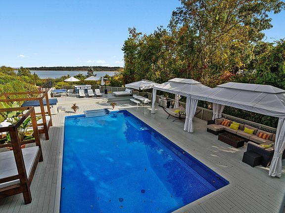 Nestled on more than 1.4 gorgeous Southampton acres, this stunning 7 bedroom, 4.5 baths is an entertainers dream. Boasting breathtaking waterfront views. Enjoy this open floor plan with walls of windows, a great room with a wood burning fireplace, a spacious living room, beautiful kitchen with plenty of counter space and a bonus game room equipped with arcade games. Enjoy jaw-dropping sunsets from the resort style backyard complete with cabanas, hot tub, heated pool and a lighted bar. Have fun in the sun on the olympic size volleyball court overlooking the bay or enjoy a game of hoops on the basketball court. This exquisite home has all the bells and whistles and is just moments away from golf courses, beaches, shops and phenomenal restaurants. This Hamptons dream home is waiting for you!