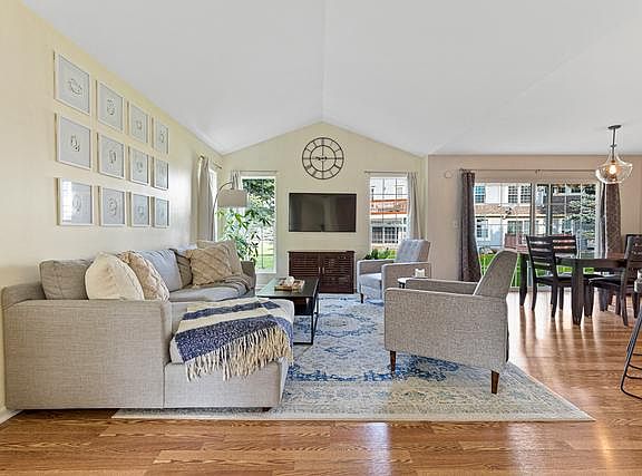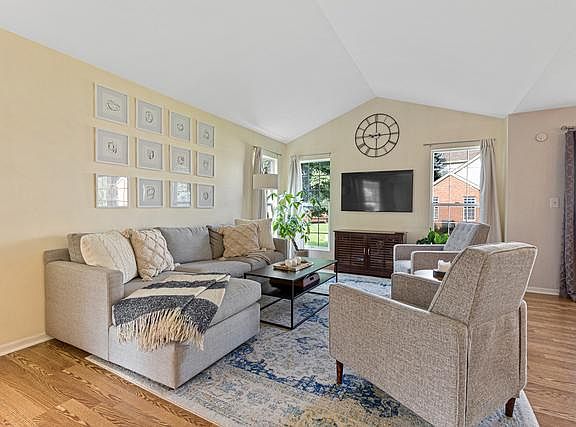 Rare first-floor ranch end unit! Move right in to this nicely updated ranch in Fox Hollow. You will love the open floorplan and vaulted ceilings. This unit feels big and bright. Freshly painted throughout with on-trend colors. NEWER stainless steel appliances. UPDATED light fixtures, UPDATED bathrooms, NEW furnace - 2018, NEW master bedroom carpet - 2019. You are sure to love the finished basement with a rec room, office area, laundry room, and plenty of storage. Attached 2 car garage! Fantastic cul-de-sac location that backs to open space and has plenty of guest parking. Come take a look - you won't be disappointed.