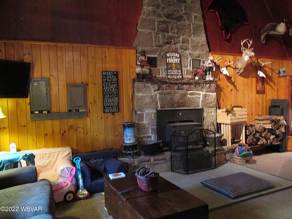 Cabin and 16 acres on the East Branch of Fishing Creek in Jamison City! This cabin features and open floor plan with a spacious loft on the second level. Gather by the beautiful stone fireplace with a Kodiac insert, out back under the 32x28 ft covered patio, or out front on the 10x26 ft covered patio. 28x40 footer and foundation for a 3-car garage out back. Cool off in the creek or the small pond with a sand beach. This property is a mix of woods and pasture, great for hunting or riding the ATV's. Minutes from State Game Lands #13, Ricketts Glen State Park and Lake Jean.