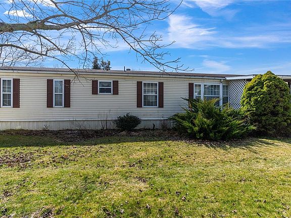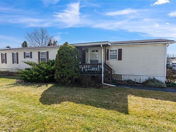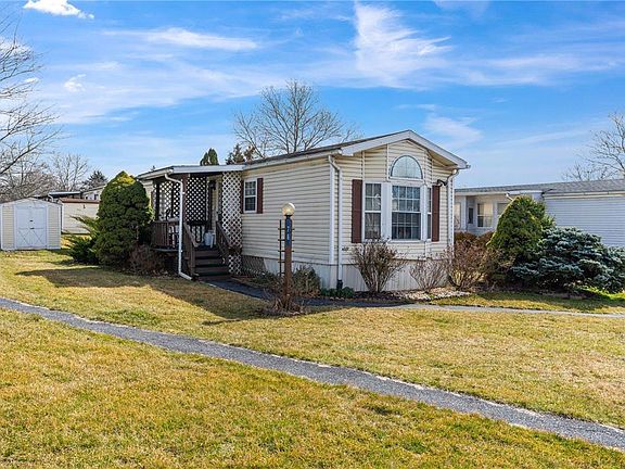 Well maintained ranch-style home featuring 2 bedrms, 1 bath w over 970 sq ft of living space. Economical all-electric heat & central air. Enter large open living rm w plenty of natural light. Eat-in-kitchen features bay window, peninsula w stove top grill, dishwasher, built-in desk, pantry, & plenty of cabinet & counter space. Laundry conveniently located across from bedrms includes built-in cabinets w drying rod. Master bedrm boasts two closets w built-in vanity/desk. Bathrm w dual sinks, large garden tub/shower combo. Add'l benefits inc 2’ by 6’ construction; Fome-Cor to protect seams/reduce noise, 2007 roof w snow & ice shield, new exterior home skirting 2021, outdoor shed, HVAC 2016, new living rm/hallway Pergo flrs 2005. Refrigerator, washer & dryer are included! Located on spacious lot w two off-street parking spaces. Community amenities inc playground, basketball crt, clubhouse, & game room. Located in the Northampton School District and close to many conveniences. A Must See!
