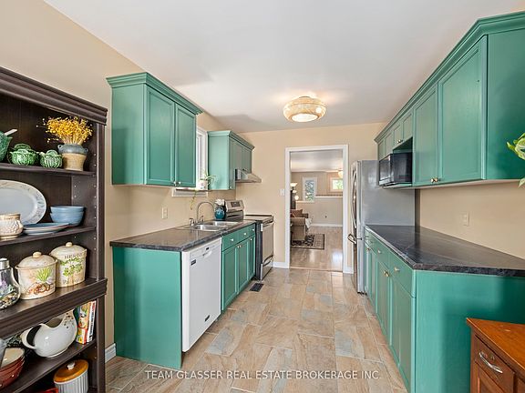 Introducing this almost 1100sqft sun-filled raised bungalow, a family-friendly gem with a charming brick façade on a quiet street. Inside, a bright & airy open-concept design features newer plank floors throughout, a spacious living/dining area & a freshly updated eat-in kitchen with S/S appliances, painted cabinets, newer countertops & sliding doors to the raised deck with storage below - perfect for entertaining or summer BBQ's. The main level also includes a generous primary bedroom with double closet, two additional bedrooms & a stylish full bath w/vessel sink & newly tiled floor. The lower level further impresses with large above-grade windows, a versatile rec room for movie nights or a home gym, an extra bedroom with closet & a full bath with newer vanity. Originally the basement was designed as a nanny suite with kitchenette (easily restored), it also offers laundry with workshop/hobby space & large storage under the stairs, with sump pump making it ideal for investors, in-law potential or simply more living space. Step outside to your own outdoor retreat: a private and treed fenced yard with flagstone patio, shed, garden beds & plenty of room for kids or pets to play. Recent updates provide peace of mind: newer flooring, stairs (2025), trim (2025), fresh paint upstairs (2025), updated lighting, waterproofed bathroom tile, newer fence, screen door (2022), roof (approx. 7 years) & furnace/AC (2018).The lifestyle here is exceptional as its a short walk to 3 amazing neighborhood parks, conservation and trails close-by, and with shopping, banks & conveniences just 15 minutes away. St. Thomas also offers a full-service hospital & the 111-acre Pinafore Park with trails, tennis courts, splash pad, lakefront paths & summer concerts. Outdoor lovers will also enjoy Angus McKenzie Trail, the Elevated Park & Waterworks Park. Move-in ready with flexible living options, this home blends comfort, community & potential perfect for families, investors & nature lovers alike.