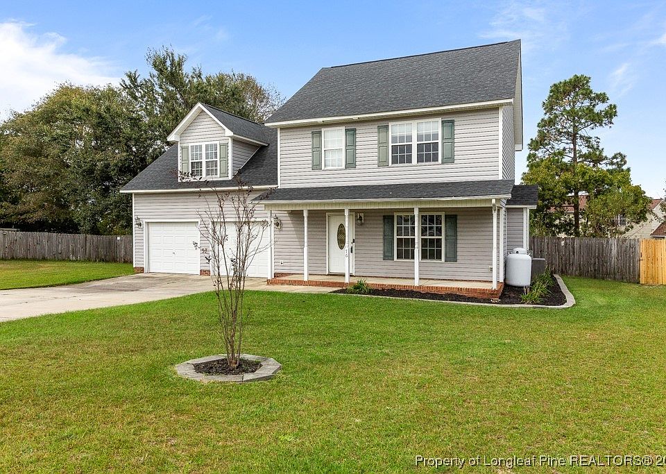 Western Harnett Area located on a court off the main throughfare. No city taxes and close to shopping & Fort Bragg. This lovely home offers 3 bd 2 & 1/2 ba with a finished bonus room, 2 car garage, and also outside storage, plus has a pet friendly fenced back yard. It has a deck off the kitchen perfect for grilling out. The Bonus room is Huge and it has a large walk-in closet. The Owners bedroom has a trayed ceiling. The beautiful entry door has an inlay of glass. Also has updated lighting in the dining room, Gorgeous Granite counters in the kitchen. It even has a covered front porch. This Home has been well cared for. Seller rents propane tank and it will be removed prior to closing. It is ready for your family to call home! Home is in a USDA Eligible area!! Garage was used as a gym and mat on flooring can be driven on (it is made for garages) or it is easily removed.