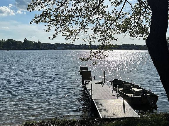 Spend a month on the water and still be able to take the train to Cambridge and Boston with this mid-century modern home. Situated on an easy lawn-to-lake half acre, this home features an updated kitchen and beautiful indoor and outdoor spaces throughout. Enjoy the private beach and dock, where you can lounge, fish, or simply escape the city. The property offers excellent Wi-Fi and internet, making it ideal for remote work. You will receive an access code before arrival, ensuring a seamless check-in experience. The home includes AC and heat, a washer and dryer off the kitchen, a gas Weber grill, a rowboat with life jackets, a fishing pole and tackle box, and a solo stove firepit with Adirondack chairs. The property features a spacious private driveway with ample parking and a garage with an enclosed parking spot. There is additional enclosed space for bikes and scooters. Located on a quiet residential dead-end street, the home is just a few miles off MA Route 2 and 3.5 miles from the commuter rail Fitchburg line MBTA train, providing easy access to Wachusett, Devens, Concord, Waltham, Cambridge, and Boston. Surrounded by farms, the area offers a peaceful retreat. Interaction is minimal to ensure privacy, but we will check in to make sure you are settled in well.