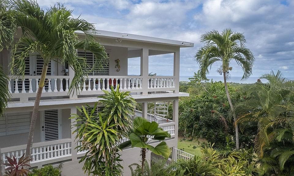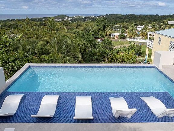 Mar Vista is nestled into the hillside in the Los Chivos neighborhood on Vieques Island and has extraordinary views of the North coast including Culebra Island and Cayo Blanco and the main island of Puerto Rico. Mar Vista is a classic Caribbean style home with three bedrooms and two bathrooms on two levels and surrounded by lush tropical gardens and a stunning, new swimming pool. Under new ownership many changes have been made including beautiful new bathroom renovations, , new windows, new mini-split air conditioners , new interior doors, new furniture, removal of trees to enhance the views and new equipment. This is a must see! The top level has the primary bedroom and bathroom both being very spacious. The bathroom is newly renovated with beautiful concrete counters, white fixtures and contemporary tiles. The upper level with primary bedroom is the main gathering area with a large open concept living area featuring panoramic ocean views from inside as well as from the oversized wrap around balconies. The very large kitchen is functional and has white kitchen cabinets and beautiful granite counter tops. The cook top has six burners and is gas. The middle level of the home is reached connected by a stairway and is completely self contained second unit. There are two guest rooms sharing an all newly renovated bathroom. The home has a generous open floor plan with kitchen, living room and dining area all sweeping out to large outdoor balconies. The pool is easily accessed through the back door of the home. There large storage area, craft room or shop on this level as well. The lower level of the home features a laundry for the whole property and ample owner's storage space. The home has secure off street parking and beautiful mature tropical landscaping. All three bedrooms have mini split air conditioning systems, security systems and the home is sold turn key furnished. The home features a back up water cistern and a solar hot water heater and an electric back-up generator. Mar Vista is surrounded by tropical gardens that will delight you. There are beautiful palm trees, succulents, colorful Bougainvillea and Heliconia, ferns and many other delights.