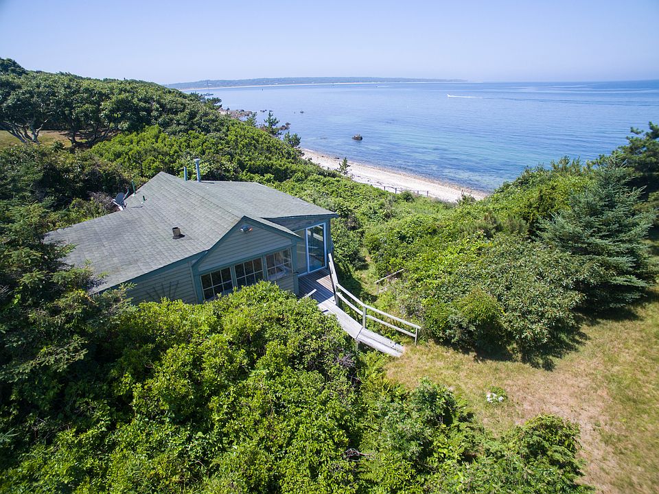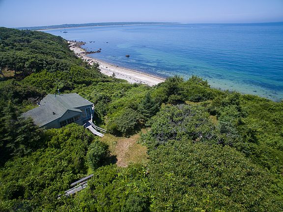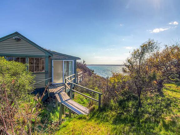 This romantic seaside cottage sits on the bluff overlooking Vineyard Sound and offers breathtaking waterviews, spectacular sunsets, a 125' private beach, a creek, and is one of only a handful of waterfront properties along the North Shore that is walking distance to Menemsha Village. With this gem of a spot, the value is in the land, the views and natural setting. At this pristine and unspoiled parcel, one can build a new home of their dreams of up to three bedrooms. This is as good as it gets!