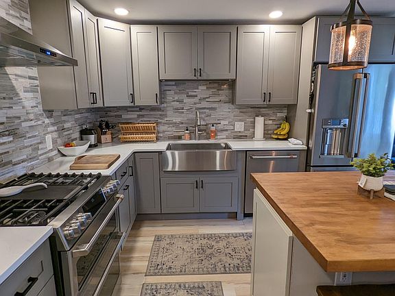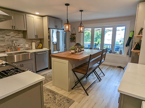 Private Oasis in Downtown Westborough! Recently renovated 3 bed / 1.5 bath condo with exclusive use fenced in yard, deck, patio w/ fire pit, and detached 3 car garage! Enter through private entrance to laundry room / storage area with washer + dryer. Kitchen includes 36" stainless farmhouse apron sink, GE Cafe stainless appliances package w/ double oven, french door fridge with hot water, and Frigidaire beverage center. Gray shaker cabinets, butcher block island, quartz counters, and integrated wine rack complete the kitchen. The master suite offers space for a king bed, large custom built out closet, and walk through closet to 1/2 bathroom with ship-lap and exposed beam ceiling. Full bath with ceramic tile, white subway tile double vanity with quartz top. Added amenities include central AC / heat, smart thermostat, recessed lighting, and plenty of built in storage. Parking for 5 cars, extra loft storage in garage. Pet friendly with references. Available early September. No broker fee required. Owner pays water / sewer, landscaping, snow removal (in common areas), and general maintenance. First floor of MF building, both units have their own private entrances. Yard, deck, patio, garage, all exclusive to Unit #1.
