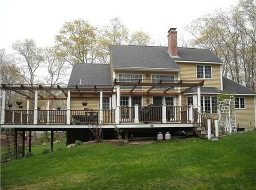 Stunning 3 bedroom home situated on a well manicured landscaped acre! Bright & open! Features 1st floor master, soaring ceilings, gourmet kitchen, double fireplace, deck, pergola & awning. Finished lower-walkout. Take stroll to Watchaug Pond.Beaches