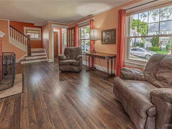 Wonderful Colonial, Offers Outdoor Living! Comes with all the character you expect on Morrow Ave! Step inside to a living room with woodburning fireplace and french glass doors to a beautiful 2-tiered deck. Formal dining room, an efficient kitchen with stainless steel farmhouse sink and a half bath to round out the 1st floor. Hardwood floors in the 3 bedrooms upstairs and a full bath with a tub and shower. Newer windows throughout the home. 2.5 Car detached garage. Very well maintained basement offering storage and a workspace if you wish. Spacious driveway is owned by seller. Neighbor has right of way to get to their garage. Gorgeous landscaping complete with Arbor!