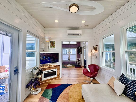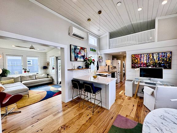 Welcome to this vibrant 2-bed, 1-bath + loft home, tucked within a gated resort-style leased land community offering exclusive access to easy-living amenities. Designed with both comfort and function in mind, this cozy retreat provides the best of single-level living with added versatility in the loft. Inside, you'll find an open and inviting layout highlighted by 7" Hickory engineered hardwood floors, a custom electric fireplace, and modern light fixtures. The bright dining area flows seamlessly into the galley kitchen, complete with a large farmhouse sink, quartz countertops with bar seating, and a convenient coffee bar nook. The bathroom offers thoughtful upgrades including a glass step-in shower, lighted smart mirror, cabinet-height vanity, and comfort-height toilet. The primary bedroom on the main level ensures ease of living for all. Outdoor living is just as inviting, with an open front porch finished in Trex decking, a screened-in back deck, and an open patio ideal for BBQs and gatherings. The fenced area is currently perfect for smaller dogs but can easily be upgraded for larger breeds. Set on a private back lot, the home offers backyard seclusion, wooded views, and tranquil surroundings. With community amenities designed for a resort-inspired lifestyle that makes every day feel like a staycation, and a home that blends convenience, privacy, and comfort, this is the perfect opportunity to enjoy cozy living with big possibilities. The monthly Lot Rent and HOA fees include the following utilities: water, sewer, trash, mowing, basic cable and land tax with exclusive access to all community amenities. Community Amenities: Gated Community entry, 2 clubhouses, 2 pools, 2 gyms, gym classes, dog parks, walking trails, ponds, community gardens, fire pits, BBQ grills, onsite community management and dynamic planned social calendar/events. Plus more!! So come see for yourself and start dreaming of the endless possibilities whether you are would like to be full-time, seasonal, or have a home used for residual rental income that you too can enjoy. STR and LTR ARE allowed with community management approval.