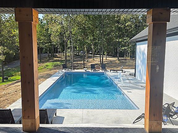 Realtors welcome to bring a buyer. Heated Salt Water 16x42 Inground pool and hot tub. Pool has side to side steps in pool, 6' tanning ledge and seating. Pool has 8' deep diving section and is plumbed for a water slide. New Kentucky Lake Custom Craftsman Home. Located within 2 miles of the Big Bear Public Boat ramp along with other campgrounds/marinas such as Malcolm Creek, Whispering Oaks, Big Bear Resort and King Creek Resort. Home constructed in 2024 in the Birmingham Pointe subdivision. 2.23 acres of cleared land but secluded with only one neighbor in view. If you want seclusion and land to play on or expand on; but be close to the lake life, this is the home for you. Plenty of roads to walk or ride your golf cart/side by side on. Bring your boat, side by side and walking shoes and fit in with a lake community. On top of an excellent community on Kentucky Lake you will be enjoying a newly constructed custom home. First you will see an extra long driveway that passes through the entire 2.23 acres. Easy access for boats, toys and all of your visitor's vehicles. Semi circle driveway near the front sidewalk puts an executive look to the driveway layout. With all the space and exits with this driveway system it is perfect for hosting or a family with all the toys. Easily add additional structures/garages behind the home in the future. Exterior is brick painted a base white with Rombia; a special masonry formula devised for brick. The black garage doors, entry doors, fascia, soffit, lighting, porches, windows and roof really make this home pop. Porches and side walks are stamped concrete in a brick pattern. Dimmable barn lights over windows and next to garage doors. Dimmable can lights on both porches. Wired and roughed-in for front/rear porch fans. Inside you will find 8' doors and openings throughout. All ceilings are 10' minimum with higher ship lap vaults in Great Room and master bedroom. You will find wainscoting throughout most of the house. Oversized 10" baseboards and oversized crown molding. Oversized Craftsman header trim over all doors/windows. Shiplap/brick fireplace in Great Room and Shiplap fireplace in master bedroom. All cabinets, vanities, built-ins, islands, wood shelves etc are Custom Amish built. Fireplaces are electric with heat; however these are the near real life flames you will find. Built-in shelves and desk in both bedrooms. Beautiful solid Engineered hardwood flooring. Porcelain tile in all bathrooms and laundry room. Laundry room also serves as a butler pantry. Surround sound in the Great Room. Cameras on exterior. Plenty of Custom lighting features on the inside. 13 custom Dimmable wall lamps to hang pictures under for accent lighting. Kitchen has a farmhouse sink with garbage disposal, double wall oven, propane cook top and vented oven hood. Master bathroom has an oversized freestanding tub, large double vanity with make-up area, and floor to ceiling tiled shower with custom glass. Custom shower has double shower heads and a waterfall rain head. Home has a tankless hot water heater, top of line Trane variable speed AC unit and wired to use a portable generator to run whole home. Rear porch has propane hookup available for all of your appliances. Spray foam insulation, 2x6 construction, trusses OC 16", slab home. Oversized three car garage with three 10x10 garage doors with quiet sound mount openers. Have a lot across the street from the home that I will include in sale of home. All measurements are +/- and should be verified. Subdivision has restrictions.