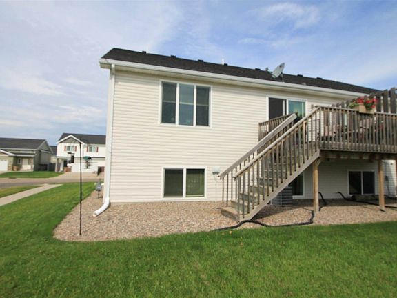 You'll feel right at home as you walk into the warm welcome of this 3-Bedroom, 3-Bathroom Tri-Level Townhouse located in the desirable Stonebridge Farms neighborhood, close to Minot Airforce Base! Be welcomed by the comfort of this beautiful, well maintained home. Leading into the house, you will find a large, open foyer, entryway and closet, with ample enough space for a table, bench or a desk. As you move up to the main level, natural light will welcome you into an open floor plan with vinyl flooring throughout the dining kitchen space. The kitchen features marvelous counter space with an attractive island extension for stool seating, maple cabinets and stainless-steel appliances. The dining room features a sliding glass patio door with quick access to the backyard deck; where you can enjoy the amazing sunrises, the beautiful neighborhood of Stonebridge, and a perfect place for the Master Griller in your life. The large living room with spacious ceilings, features warm, neutral carpeting, and plenty of windows to enjoy natural light. As we move up to the upper level, the master bedroom is spacious enough for a king sized bed, with a beautiful view when the sun goes down. In addition to the convenience of the full bathroom, you will find plenty of closet space with a nice walk-in. The other bedroom is located next to the master and with a conveniently located full bathroom in the hallway. As we pass through the main level, making our way to the lower level, where you are greeted by a very large second living area with daylight windows, plus you will find one more bedroom, a full bathroom, and laundry room. Also notice the closet at the bottom of the stairs for plenty of storage. The Property includes A nice High Efficiency Natural Gas Furnace for super low heating costs and comes with central air to enjoy during the warm days of summer. The attached two-car garage has plenty of room for two vehicles and additional storage, is insulated, and sheet rocked. Included for you with the sale are a high efficiency washer and dryer set! This home is located in a very quiet area and is situated on a beautiful view corner lot, with underground sprinklers in the front, and backyard, close to shopping, walking/biking paths and everything you need to access in town. This home is ready for new owners to simply move in and enjoy! Call an agent and schedule a showing today and make it your new home! Also check out the 3D Virtual Tour, lower level to be added next week!