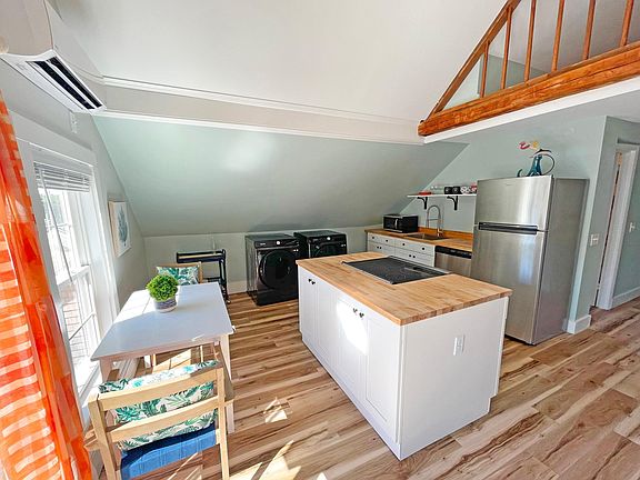 NEW PRICE $500 drop in rate per month. Price is winter rental rates but this unit is also available for annual lease. Inquire to learn more. Indulge in coastal living at its finest with this charming 2-bedroom, 1-bathroom furnished apartment. Boasting cathedral ceilings and a private balcony, this residence is a mere 7-minute stroll away from the sun-kissed shores. Seize the opportunity to reside near the ocean in this immaculate, fully updated property from 2022. Nestled in the pinnacle position of a 6-unit property in the prestigious Seacoast of New Hampshire, this penthouse unit offers not only a stylish interior but also exclusive access to the beautifully manicured grounds. Enjoy the expansive backyard and gather around the fire pit area for memorable evenings. This residence is designed for convenient living, featuring a fully stocked kitchen with modern appliances, including a stove, dishwasher, and refrigerator. Revel in the comfort of brand-new furniture and decor that complements the aesthetic. The in-unit washer/dryer adds a practical touch, while the availability of BBQ grills makes entertaining a breeze. Unwind in the spacious king-sized bedroom equipped with a 55" TV for your entertainment. Take control of your comfort with guest-controlled mini-split air conditioning. For those who appreciate an additional level of convenience, garage parking is available for an extra fee. The second bedroom, currently furnished with a double/full bed. Note that there are two sets of stairs to access the unit. One set is outside and in one of the pictures of the back of the property. Deposit of one month rent and first month rent due at signing. Renter responsible for electrical, cable/internet. Landlord covers water/sewer, landscaping and snow removal. Price for winter rental. 12 month available - inquire to learn more. Credit and background check required