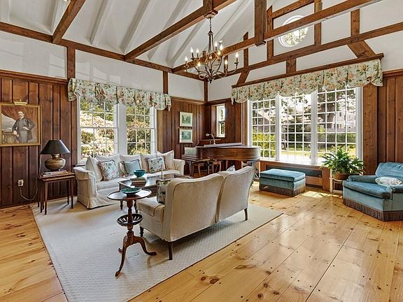 Beautifully RESTORED carriage house, steeped in character & history.Multiple additions & renovations over the years have created a one of a kind MASTERPIECE.Impressive foyer with original stone archway.Spectacular sun filled living room with 2 story beamed cathedral ceiling,gas log fireplace & wall of windows.Entertain in the magnificent dining room with beamed ceiling & lofted area or relax in the family Rm with custom built ins,wood stove,skylights & bay window.The upscale kitchen offers s.s. appliances & granite counters.The master suite offers a walk in closet with full bath.To compliment 3 supplemental bedrooms provide great versatility to suit as needed.The grounds are breathtaking offering a water garden with stone surround,waterfalls & exquisite perennial gardens.This property is a RARE find with retreat setting,deeded rights to Inner Little Harbor,seasonal waterviews of Little Harbor/Ocean & a walk to Sandy Beach.Charm & warmth personifies throughout this quintessential home.